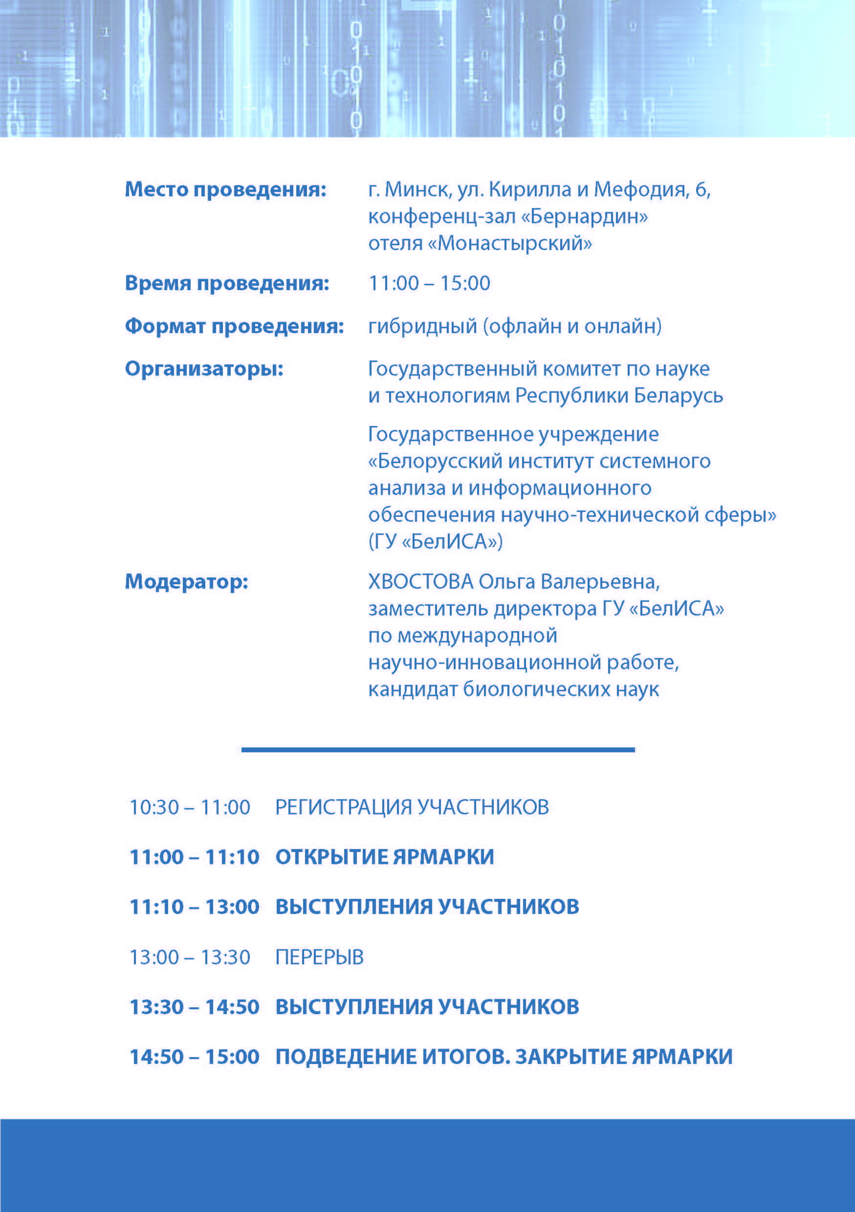 Дополнительную информацию по вопросам проведения и участия в ярмарке можно получить по тел. +375 (17) 203 13 19.