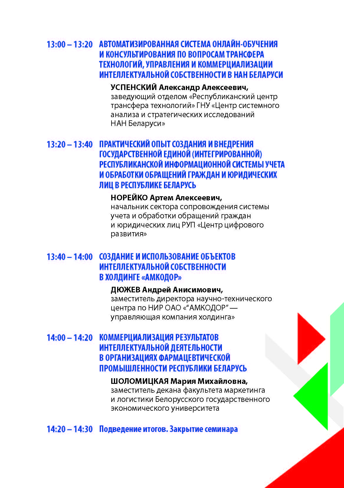 С докладом «Автоматизированная система онлайн-обучения и консультирования по вопросам трансфера технологий, управления и коммерциализации интеллектуальной собственности в НАН Беларуси» выступил заведующий отделом «Республиканский центр трансфера технологий» ГНУ «Центр системного анализа и стратегических исследований НАН Беларуси» Успенский Александр Алексеевич.